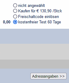 Hinweis: Es gibt für jede Funktion (pro Kunden-ID) nur eine einzige 60-Tage Testversion.