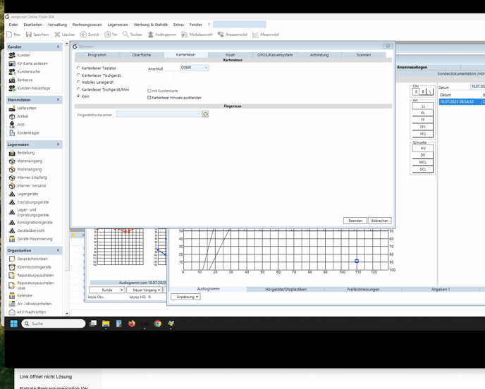„Kartenleser Hinweise ausblenden“ (optional zur Fehlervermeidung bei Initialisierung).