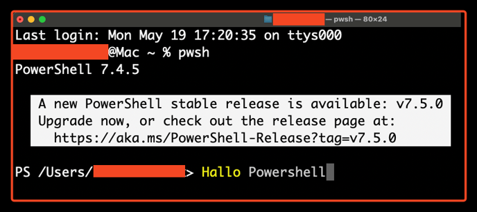 Falls wir mit MacOS arbeiten benötigen wir Powershell. Mir ist keine Lösung bekommt ohne pwsh.