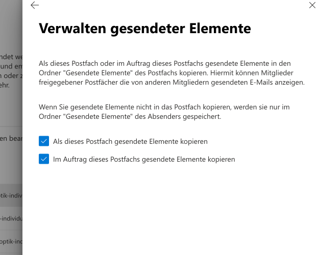 Freigegebene Postfächer - Gesendete E-Mails in Postfach behalten (PWA und Exchange Online)