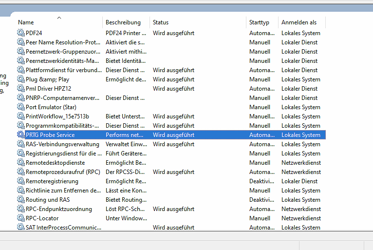 - Sicherstellen, dass PRTG Probe Service läuft.
