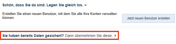 Sie haben bereits Daten gesichert? Dann übernehmen Sie diese.