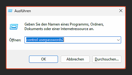 Erweiterte Benutzerverwaltung ebenfalls auf Erweitert.