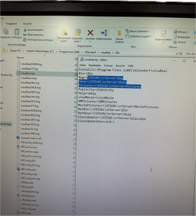 In der visuReal.lrp wie im Foto markiert den Rechnernamen ändern.
