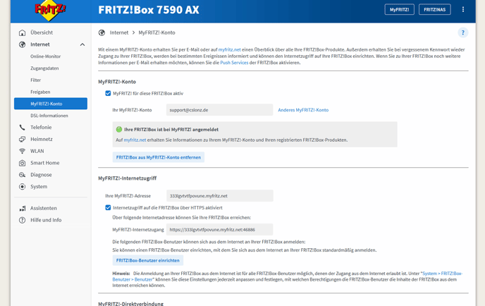- Schaue dir die MyFritz Adresse in der FritzBox an