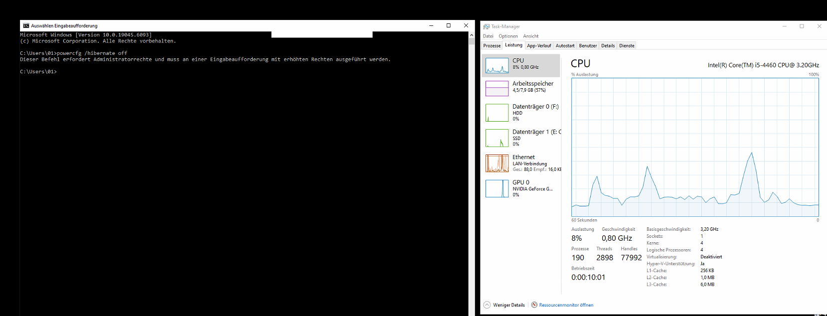 6. wenn die CPU Auslastung nicht reduziert, dann bitte "CMD" als Admin öffnen