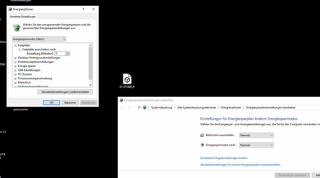 4. Bildschirm ausschalten und Energiesparmodus auf "niemals"