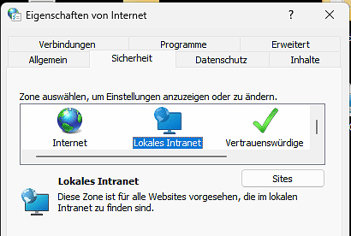 (Zonenwerte: 1 = Intranet, 2 = Vertrauenswürdige Sites, 3 = Internet, 4 = Eingeschränkt)