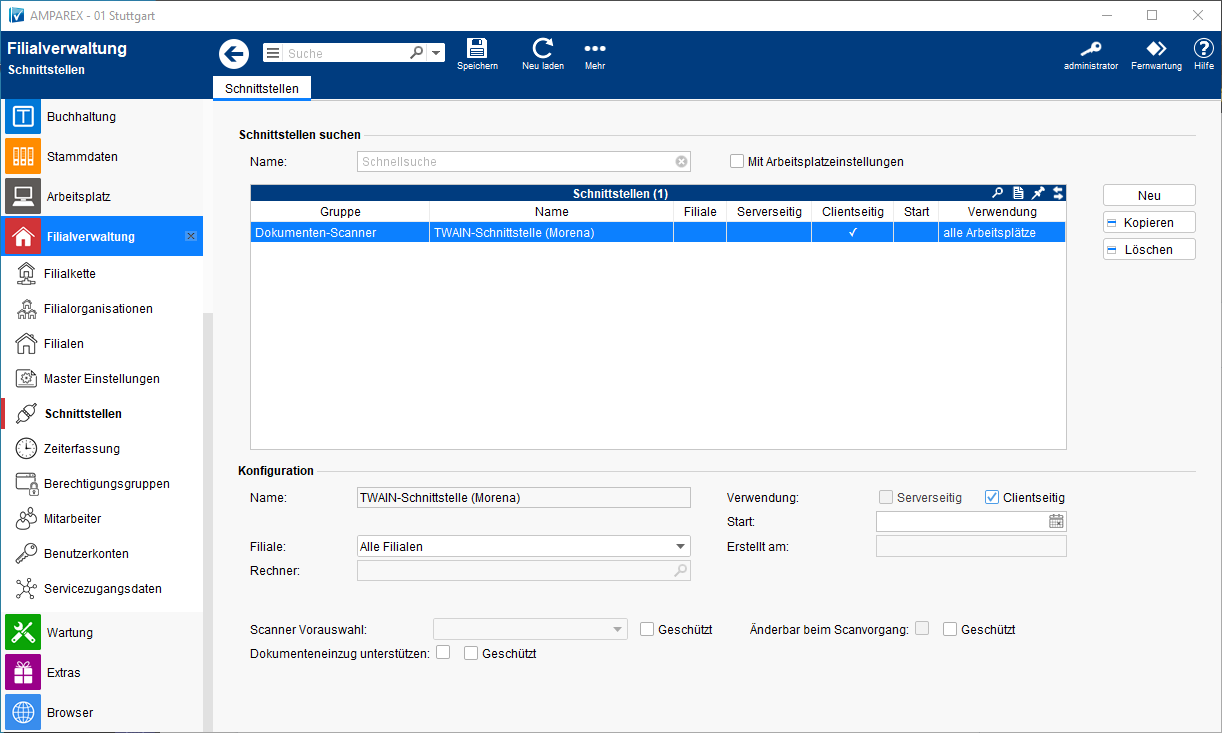 - Neu -> Twain Schnittstelle (Morena) wählen -> Drucker wählen