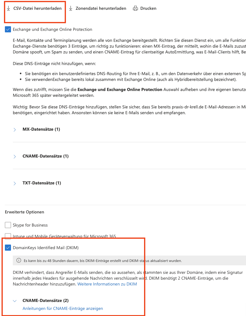5. diese Einträge in der Domainverwaltung hinterlegen.