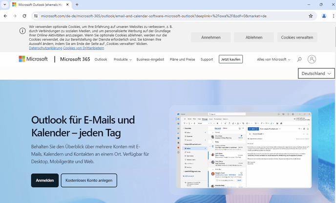 Zuerst ein mal Chrome öffnen, dann in die Adresszeile Outlook.de eingeben.