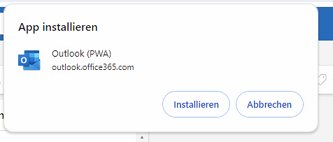 rechts unten auf dem Bildschirm erscheint die Frage ob man Outlook PWA an der Taskleiste fixieren will, hier dann auf Ja klicken.