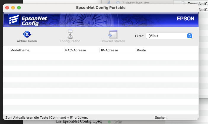 Wenn der Drucker online und im gleichen Netzwerk verbunden ist, wird er in dieser Liste angezeigt.
