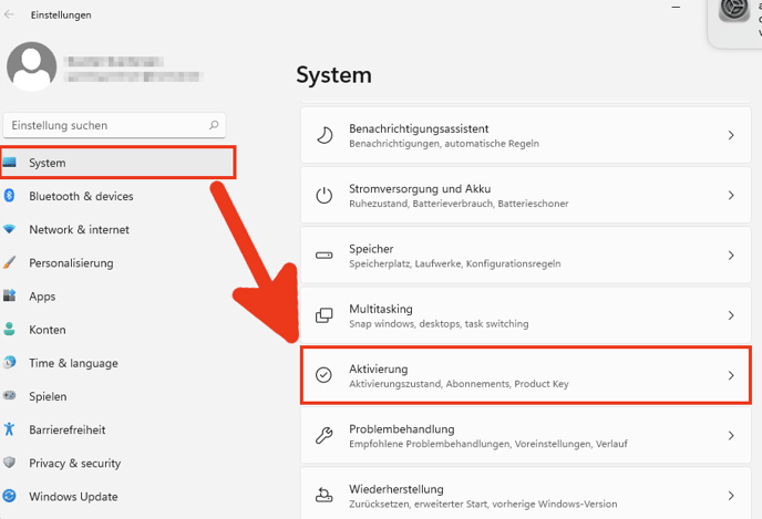 gehe zur Systemsteuerung und dann auf Aktivierung